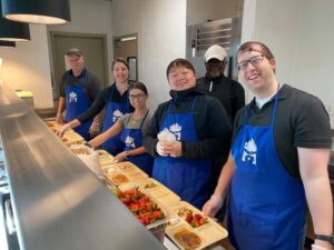 The Stewpot volunteers serve a meal at The Bridge. Photo courtesy of the Stewpot