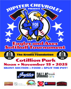 The Fraternal Order of Eagles #3108 will host the annual Eagles & Axes Softball Tournament on November 15 at noon at Cotillion Park. This friendly, family-oriented competition brings together local teams, firefighters and community members for a day of fun on the field. Proceeds benefit the Lt. Todd W. Krodle Foundation, which honors Lt. Krodle’s legacy by supporting Dallas firefighters and their families. Founded in 2014 by his loved ones and crew, the foundation awards scholarships to children of Dallas firefighters and provides aid to families affected by line-of-duty injuries or loss. The public is welcome to come out and spectate, enjoy food, the silent auction and a 50/50 raffle to show their support for a great cause. The park is located at 3600 Barnes Bridge Rd. in Dallas. — Kelly Parker