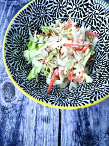 In a mixing bowl, whisk together miso and vinegar. Gradually whisk in oil, add Cole slaw mix and toss to mix. Toss in sunflower seeds. Season with salt. Let stand 20 minutes before serving.
